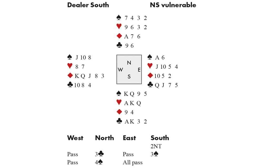 Nor did it seem to affect her game. Here, she defeated me in 4♠ with an effortless piece of deception.