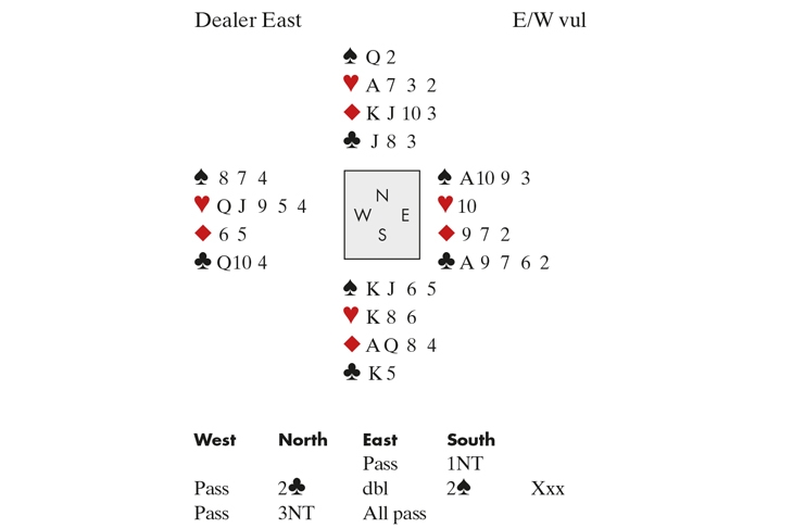 In response to partner’s lead-directing double, West led ♣4. At the other table, with a similar auction and the same lead, East covered dummy’s ♣3 with the 6 and promptly went down. If declarer won with the king the defence would be able to cash four clubs when East got in with ♠A. Ducking was no good either as East can play ace and another club and the contract is two down. When Geir played the hand he calculated that against best defence he could only make the contract if West held ♣Q 10 4. He therefore rose with dummy’s ♣J at trick one! East could do nothing. If he won with the ace and returned a club, West’s last club would block the suit. Nor could East do any better by ducking: when he came in with ♠A it would be impossible to untangle the suit. Interestingly West can only defeat 3NT by leading the ♣10. East lets this run and declarer is doomed, whether he wins with the King or not. I bet Helgemo would have found it!