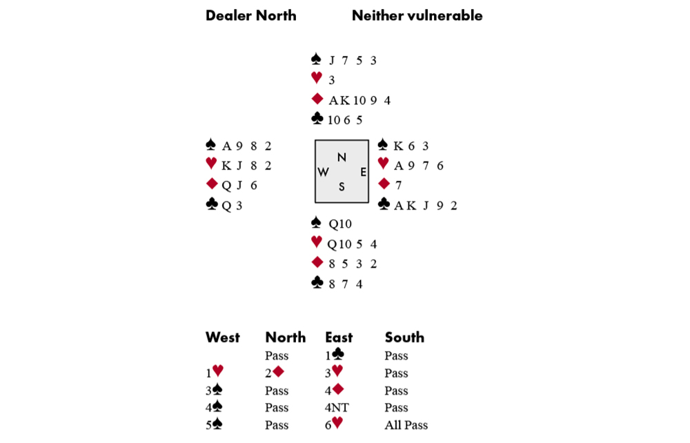 Klukowski was West: his 5♠ response to keycard showed two plus the ♥Q! I guess you may as well upgrade your hand when you play like him. North led the ◆A and continued with a low diamond. Klukowski ruffed, cashed the ♥A and promptly ran the ♥9. When North discarded, he took a second finesse and claimed. How did he know? The bidding: North had entered at the 2-level – so why hadn’t he opened a weak 2◆? Probably because he also held four spades. If he held a singleton club, he might have led it. So he was likely to be short in hearts. Backing his judgment, Klukowski proved yet again that he’s a cut above the rest.