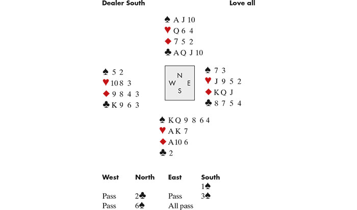 I don’t particularly like North’s jump to slam over 3♠, but he didn’t have an easy bid and figured it was a good practical shot which gave nothing away. Despite this lack of information, West hit on the killer diamond lead — annoying as the slam is a claim without it.