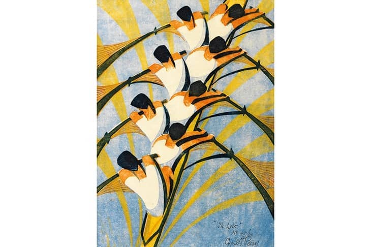 In the 1920s the linocut broke out of the schoolroom and on to gallery walls. Here was a democratic new art form, perfect for the times with its lowly materials — a piece of old linoleum flooring for the block, while the best tools, according to the artist Claude Flight, were an old umbrella spoke for cutting and a toothbrush to rub the back of the paper. The finished prints, Flight hoped, would be cheap enough for working-class pockets.