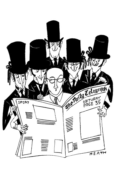 Put it down to Hugh Massingberd. He was the great man who launched obits in the Telegraph in the late 1980s. Of course, obits had appeared in the paper before then, but only occasionally, and then they were pretty stuffy. Hugh was the man to carve out a regular column, which has grown over the years to the entire page it inhabits these days. The secrets of his success were his catholic tastes and roving eye — his instinctive understanding that readers are interested in so much more than the arid achievements of peers and prime ministers as laid out in Who’s Who. What people were after, Hugh realised, was a splash of colour, a tasty titbit of gossip or three, and an amiable indication of the true nature of the dead chap’s character. Thus when readers discovered that the stiff in question ‘did not suffer fools gladly’, they knew they were dealing with a total shit.