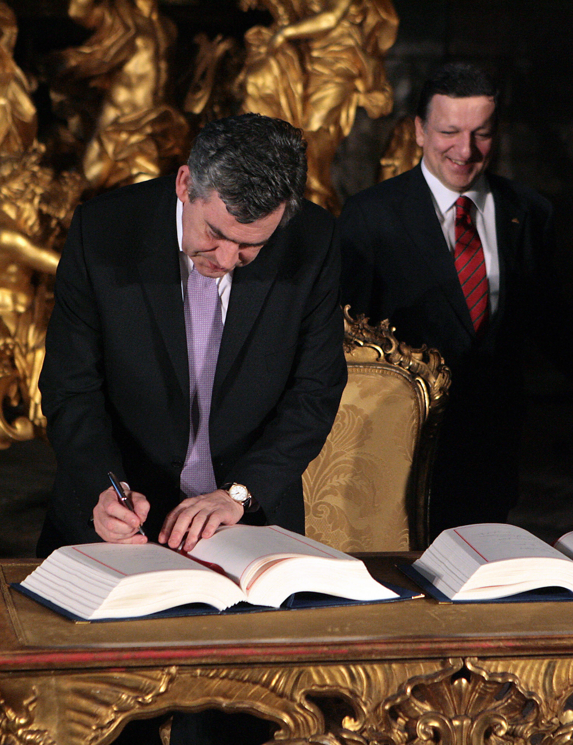 P.S. An explanation for those puzzled by all the “UK ratifies Lisbon Treaty” headlines now Brown’s said he’ll delay ratification.  The bill to implement the Lisbon Treaty has passed successfully through the UK’s traditional ratification process – i.e. it’s got past Parliament and has been given Royal Assent.  However, in this case, there’s another step: the “instruments of ratification” need to be depositied in Rome.  That’s what Brown is holding back from doing.
