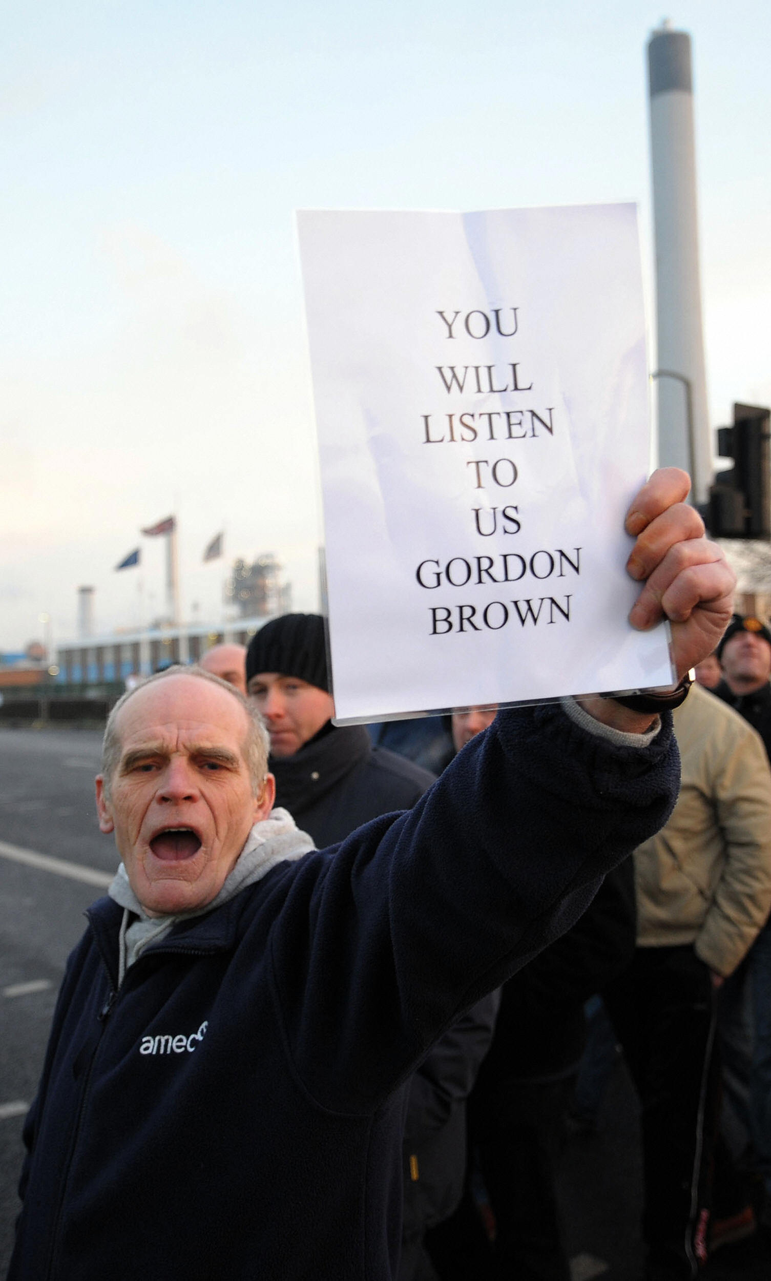 It was all, now, a terrible miscalculation. Like all Brown’s errors, he got ahead of himself in a desire to shaft the Tories – saying “British Jobs for British Workers” (as he first did in Jun07) was designed to make him sounder harder on immigration than Cameron. Not difficult, as even now the Tories daren’t raise the topic. But how was Brown going to deliver? He didn’t quite think he’d be asked to. It is an old political trick – to develop a soundbite, intended to disguise a lack of policy. But under EU law there can only be EU workers – he can’t help British workers, at the expense of the other EU nationals living here. When the National Front first came out with this slogan in 1974 it was at least enforceable. But Brown’s version was not. It was all a chimera, designed to spin the media. But spinning the public is harder. Spinning these workers in the refinery, who can see the Portuguese and Spanish parachuted in, is impossible.