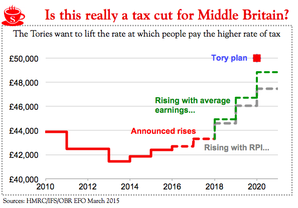 We learn this morning that George Osborne is planning a tax cut for the middle class, by raising the earnings threshold for the 40p tax. Of course, this was raised automatically in the Labour years (in line with RPI inflation) and even tricksy Gordon Brown never billed it as a tax cut.