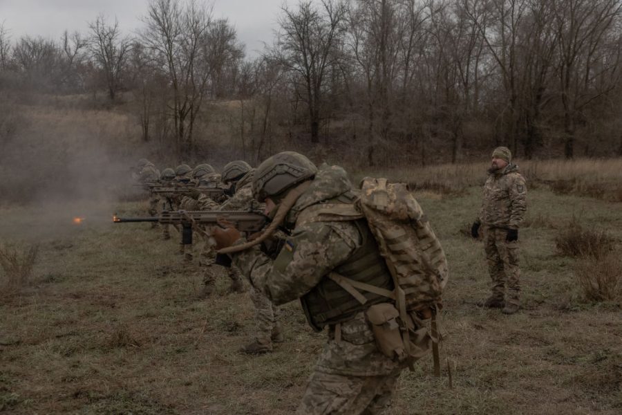 Ukrainian soldiers take part in a training exercise (Credit: Getty images)