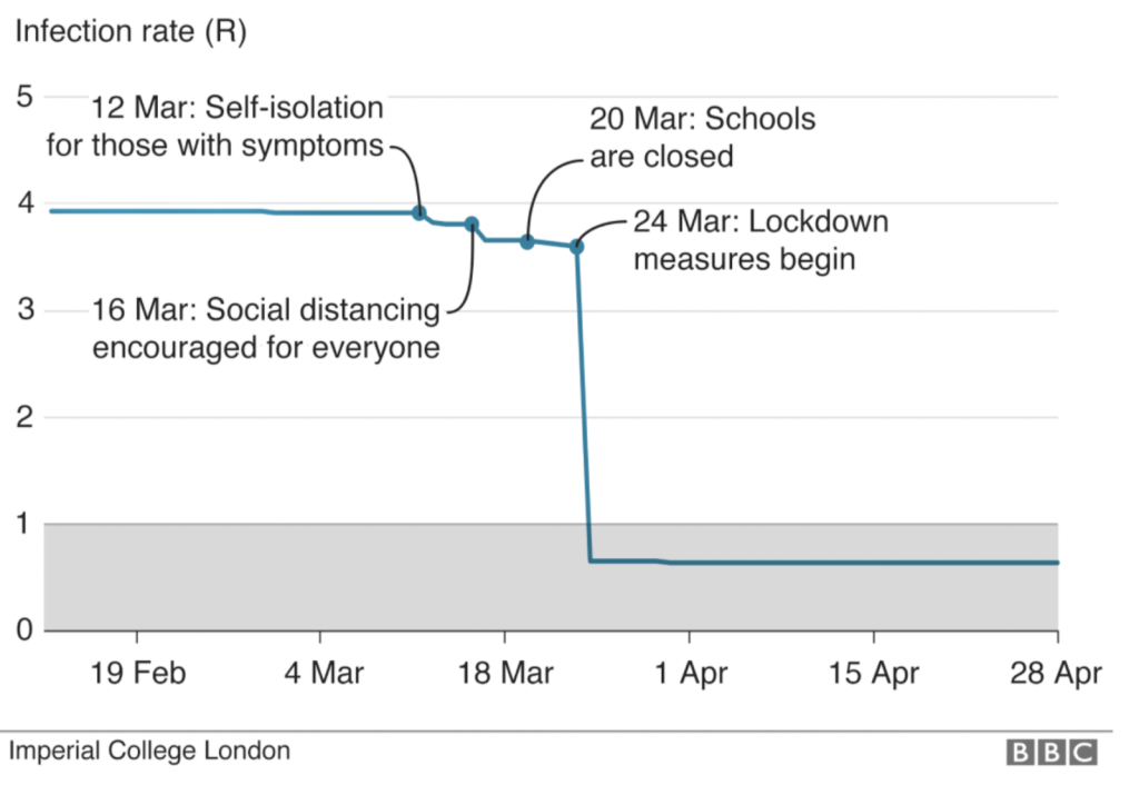 c) Lockdown is the magic bullet. As soon as it is imposed, the R-number collapses overnight to below one so the virus is forced into retreat. This is the cliff-edge theory: lockdown will see Covid infection numbers fall off a cliff.