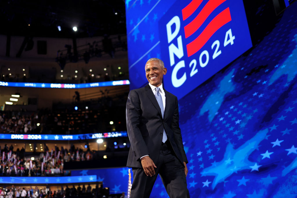 Barack Obama walks off stage after speaking at the Democratic National Convention, 20 August 2024 (Getty Images)