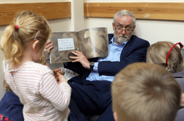 Alas, this message was distracted from slightly thanks to the faces Corbyn pulled as he read Michael Rosen’s We’re Going on a Bear Hunt to the children.
