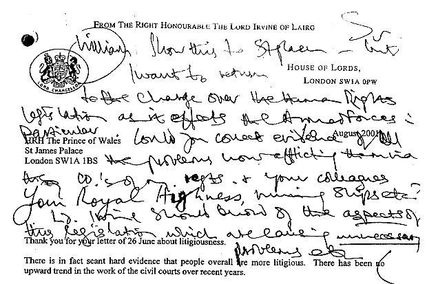 The Prince of Wales’s ‘spider letters’ are out today – his letters to government ministers written or annotated in his distinctive spidery hand (see above) have been released under the Freedom of Information Act. Hat tip to James Snell on Twitter for alerting me to this utter garbage from the Guardian’s liveblog:
