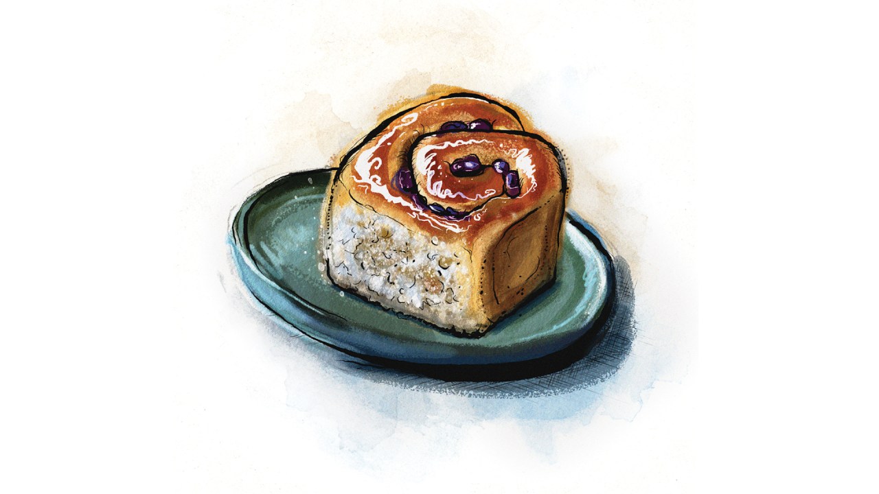 Some recipes call for candied peel to be added to the filling, or bigger, fatter dried fruit like sultanas, but this isn’t quite right either historically or for my tastes. It’s the simplicity that works so well here – the dark sugar combined with the little currants against the soft dough. Adding anything more than a whisper of lemon zest takes these dangerously into hot cross bun territory. If you’re going to go off piste, then I’d recommend trying the beloved Middle Eastern restaurant Honey & Co’s Fitzrovia buns (named after the location of its flagship branch), which are filled with sour cherries, pistachios and ground mahlab.