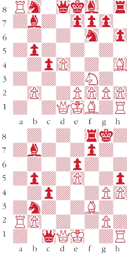 1 d4 d5 2 Nf3 Nf6 3 c4 c6 4 Nc3 a6 5 Bg5 dxc4 6 a4 h6 7 Bh4 b5 8 axb5 cxb5 9 Nxb5 axb5 10 Rxa8 Bb7 (see diagram 1) This is an imaginative sacrifice of the exchange to gain the initiative and give White endless trouble with his king. 11 Ra1 g5 12 Bg3 e6 13 e3 Bb4+ 14 Ke2 Nc6 15 Ne1 Na5 16 Be5 0–0 17 h4 g4 18 Nc2 Be7 19 Ke1 Nb3 20 Ra2 h5 21 Be2 Bd6 22 f3 Nd5 23 fxg4 Bxe5 24 dxe5 Qb6 25 Bf3 Nxe3 26 Nxe3 Qxe3+ 27 Qe2 Qc1+ 28 Qd1 Qe3+ 29 Qe2 Qc1+ 30 Qd1 (see diagram 2) McShane now declines to take the draw and cashes in on his extremely active forces. 30 … Bxf3 31 gxf3 Qe3+ 32 Qe2 Qc1+ 33 Qd1 Qe3+ 34 Qe2 Qf4 35 Qh2 Qxf3 36 Rf1 Qe4+ 37 Kf2 Nd2 38 Rg1 Qf3+ White resigns After 39 Ke1 Qe3+ 40 Kd1 Nb3 White will soon be mated.