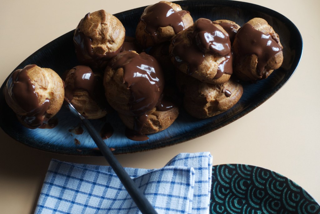 Choux pastry can inspire fear in even the most confident of cooks. There’s a good reason for it: it’s difficult to give a very precise recipe for choux pastry, as the amount of egg needed to create the correct texture depends on the flour you’ve used, how long the choux has rested, and how fast and how thoroughly you have cooked the choux mixture out. It’s the water content in the egg that primarily causes the choux to rise and puff in the oven into those distinctive domes or elegant eclairs: not enough and they will fall flat, but too much and the pastry will be too sloppy to pipe properly. It’s the Goldilocks of pastry recipes.