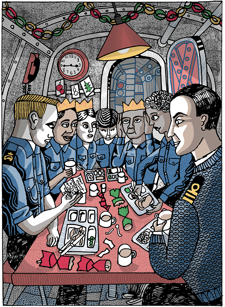 Some submariners prefer to open their presents in private, finding solace in a quiet moment to reflect on what they’re missing back home. One captain opened a present from his wife in the wardroom only to discover that she had given him a nose-hair plucker. He was mercilessly reminded of this for the remainder of the patrol. A charity box of small presents is distributed to all on board and mess chiefs ensure that everyone has something to unwrap on Christmas Day.