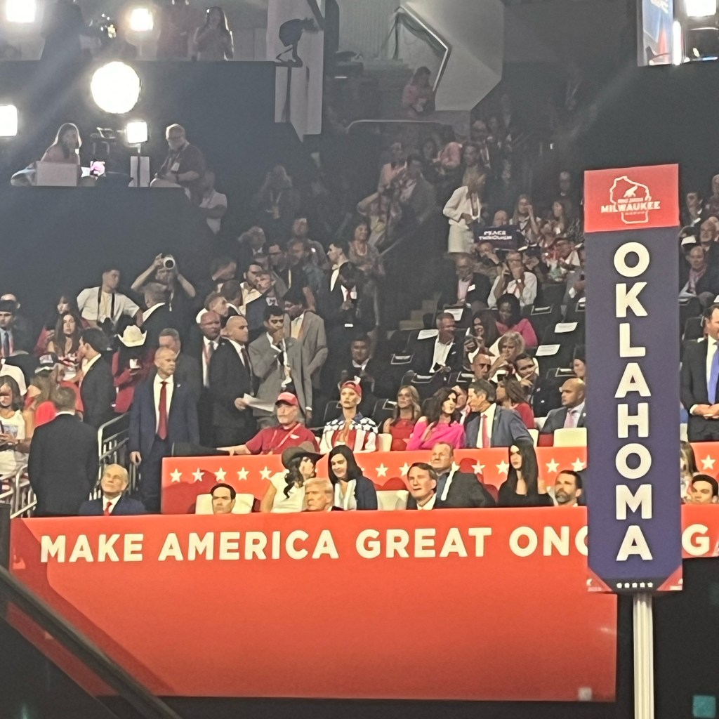 Cockburn shot this from the convention floor — also spotted: Texas governor Greg Abbott, Florida senator Marco Rubio, Texas congresswoman Monica de la Cruz, New York congresswoman Nicole Malliotakis, Virginia governor Glenn Youngkin, Colorado congresswoman Lauren Boebert and Donald Trump Jr.: