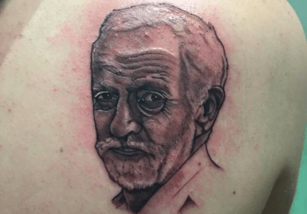 In fact, one 18-year-old fan by the name of Kierran Horsfield has decided to do his own permanent tribute to the Labour leader, with an inking of Corbyn’s face on his shoulder: