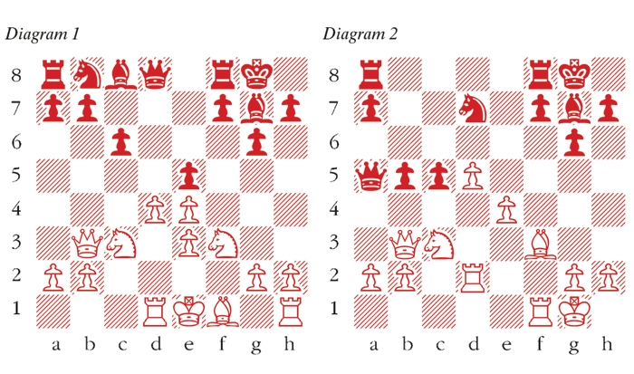 1 d4 Nf6 2 Nf3 g6 3 c4 Bg7 4 Nc3 d5 5 Qb3 dxc4 6 Qxc4 0-0 7 e4 c6 8 Qb3 e5 9 Be3 Ng4 10 Rd1 Nxe3 11 fxe3 (see diagram 1) Fischer has won bishop for knight which he described as being ‘practically a decisive advantage in an open position like this’. 11 … exd4 12 exd4 c5 Fischer chooses not to target White’s doubled pawns but to instead open the position to get his bishops working. 13 d5 Bg4 14 Be2 Bxf3 15 Bxf3 Bd4 This manoeuvre is designed to prevent White from castling and to fortify Black’s initiative. 16 Ne2 Qa5+ 17 Rd2 Bg7 18 Nc3 Nd7 Black can afford to give up the b-pawn since if 19 Qxb7 Rab8 20 Qxd7 Rxb2 21 Rxb2 Bxc3+. 19 0-0 b5 (see diagram 2) Now White cannot consider 20 Qxb5 Bxc3 or 20 Nxb5 Qxd2. 20 Rdd1 b4 21 Qa4 Qd8 22 Nb5 Qb6 The knight is trapped. 23 d6 c4+ 24 Kh1 Nc5 25 Qxb4 a6 26 Rd5 Nd3 27 Qxc4 Nf2+ 28 Rxf2 Qxf2 29 Rd1 axb5 30 Qxb5 Qxb2 31 Qc6 Rxa2 32 d7 Ra1 33 Qc8 Rxd1+ 34 Bxd1 Qd2 White resigns