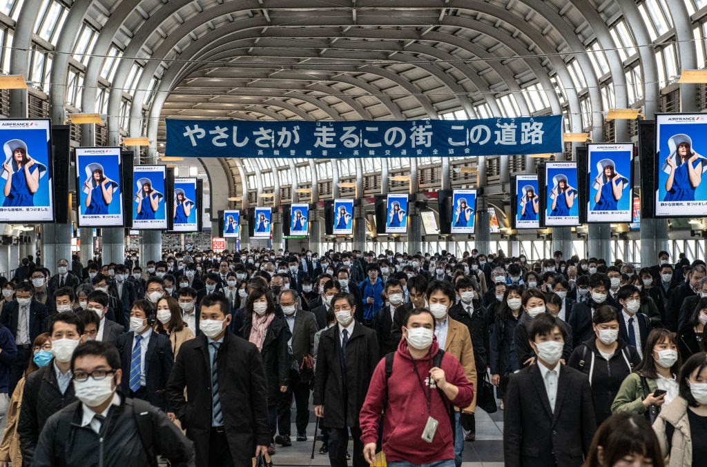 - Commuter trains in Japan were full despite the country being in the first day of a state of emergency. There are currently no penalties in place for breaking lockdown rules.