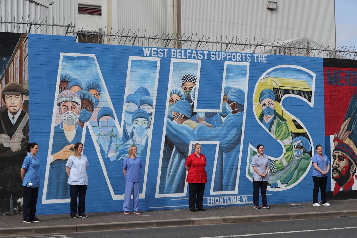 Covid-19 troubles: a new mural on Belfast’s Falls Road