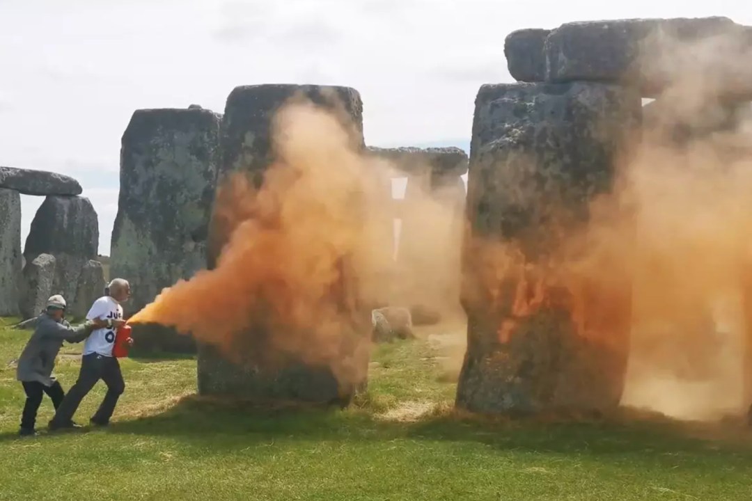 It is two years since a couple of morons from Just Stop Oil decided to throw a tin of soup at Van Gogh’s ‘Sunflowers’ in the National Gallery. A glass cover protected the painting. In March an anti-Israel protestor spray-painted and then slashed a portrait of Lord Balfour in Trinity College Cambridge. Earlier this month a protestor in Paris stuck an adhesive poster on to Monet’s ‘Coquelicots’ at the Musée d’Orsay. And this week Neanderthals from Just Stop Oil defaced Stonehenge with orange cornflour.