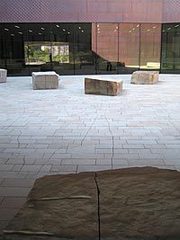 “Working with the Appleton Greenmoore stone imported from Yorkshire, England, that will surround the new de Young building, Goldsworthy has created a continuous crack running north from the edge of the Music Concourse roadway in front of the museum, up the main walkway, into the exterior courtyard, and up to the main entrance door.