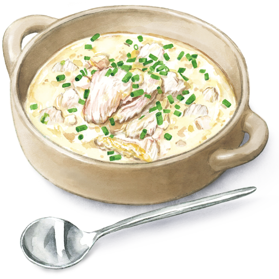 But in Cullen, a fishing village in Morayshire on the north-east coast of Scotland, in the late 19th century, beef was in short supply. Haddock, however, was plentiful. What was once a beef soup became a smoked fish soup, and Cullen skink was born. The smoked haddock, as well as being local and abundant, gives the soup – which, with its creamy base and hearty texture, is essentially a chowder – a distinctive and complex depth. It’s easy to see why it quickly became a beloved and integral part of Scottish culinary heritage.