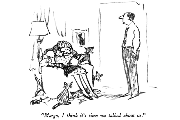 There are stories from John Updike, T. Coraghessan Boyle and Sylvia Townsend Warner among others — the Updike, about an asthmatic who inherits 40 cats when his mother dies, is terrific. There are some fine cartoons — ‘Never, ever think outside the box’, one man instructs his cat as it stands beside its litter tray – and there’s even a piece about a cat-themed film festival. This included an unmissable work entitled ‘Sausalito Cat’ made by former Andy Warhol ‘superstar’ Viva, consisting of ‘painfully out-of-focus shots of the Sausalito waterfront interspersed with footage of a black cat standing in a doorway.’