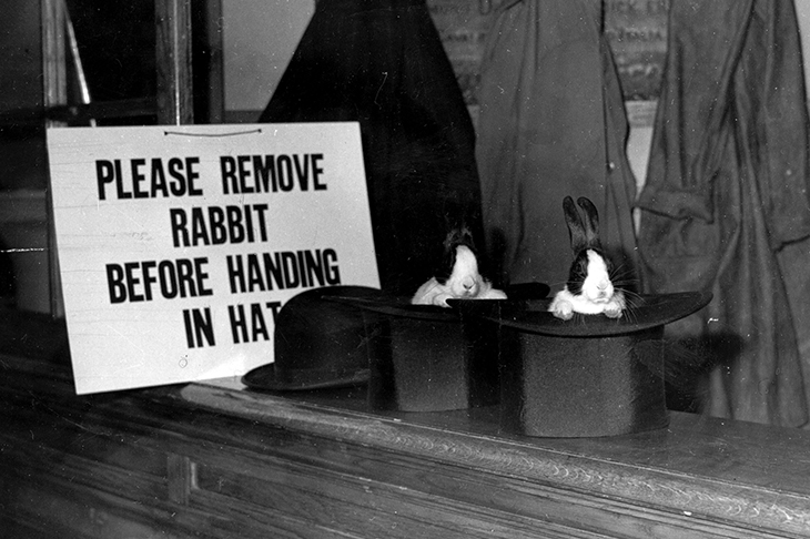 Chatting to Bill, I nervously make a confession: I love telling people the secrets behind tricks. I know a dozen or so, using everyday objects and requiring no great sleight of hand. There’s an absolutely baffling mindreading effect with a pair of books — you can even do it at someone’s house with their own books, so they know there’s no cheating (or at least none they can spot). The joy comes in sharing the secret, rather as you want to share any great joke you hear. I’ve always disliked people who insist on showing you a trick but then won’t reveal how they did it. That’s when magic puts distance between people, rather than bringing them together.