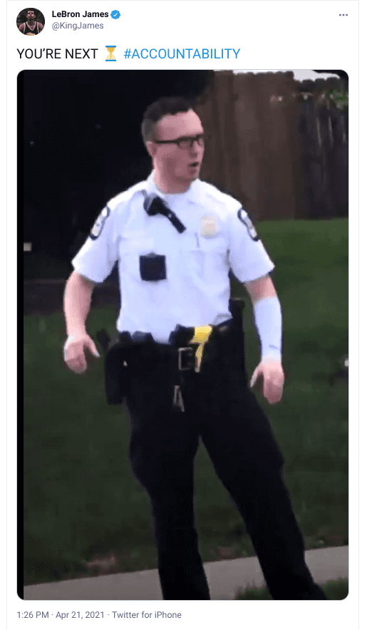 The photo and related text pose an obvious danger to the officer himself, as I’m sure some lawyers and PR experts must have quietly told James. Even after LeBron took down the tweet, he defended it because, of course, ‘systemic racism.’