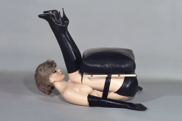 But what to make of them today? As objects, these hyper-realistic sculptures are still intriguing to look at, but political discourse has moved on. Feminism’s third wave reclaimed symbols previously seen as disempowering, such as stilettos and fetishwear. So perhaps Jones’s women are blissfully happy as sex objects? Only a few weeks ago, Kim Kardashian elected to be photographed for Paper magazine with a glass of champagne balanced on her bottom — part drinks trolley, part Hottentot Venus. Sexual politics certainly haven’t become any less murky, that’s for sure. Jones’s sculptures speak of a time when sexual boundaries were more defined, and depicting a woman as a piece of furniture wasn’t seen as a triumph for feminism.