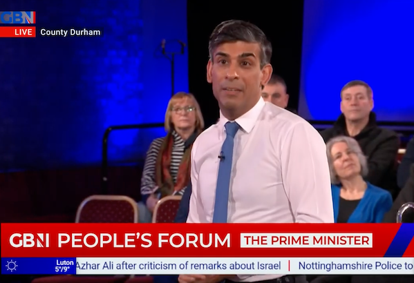Then it was over to the public. The host said the questions hadn’t been vetted in advance, and GB News had no idea what Rishi would be asked. The first query was as soft as they come. David from Darlington invited the PM to list the Tories’ achievements since 2019.