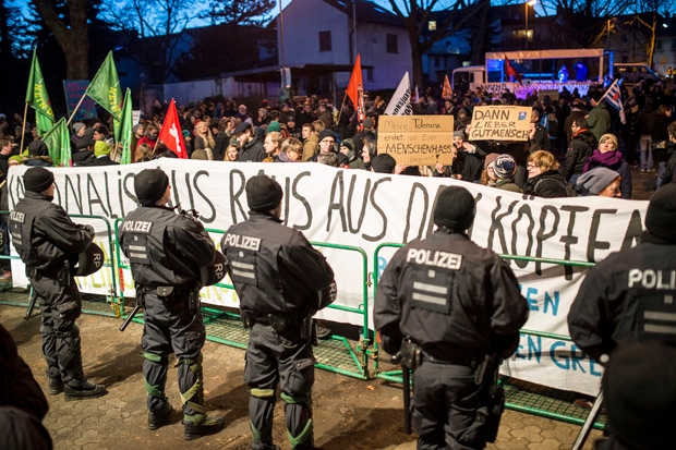 Meanwhile, a mob surrounded a coach taking refugees to a hostel in Clausnitz near the Czech border. When the refugees were reluctant to disembark, police dragged some of them out of the bus and to the hostel. No wonder German politicians claim the ‘police can’t cope’. Sickeningly, there were 920 attacks on refugee hostels in Germany last year.