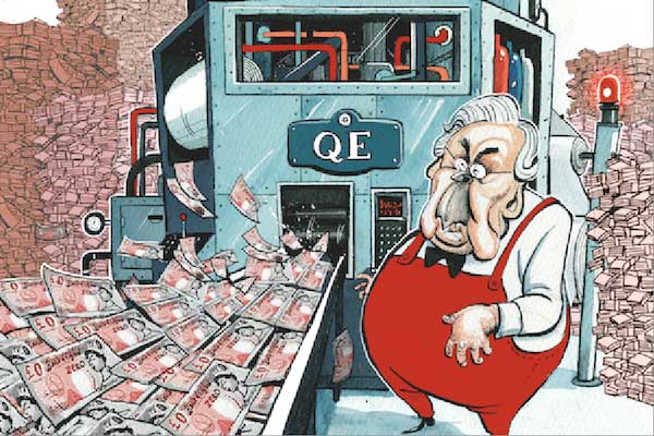 ● QE is sometimes compared to printing money — shades of those wheelbarrows of cash they need in Weimar Germany to buy a kartoffelwurst for lunch (soft drink not included). Printing money, as we all know, is a rotten idea. However, if you take this position you will betray yourself as a being of simple tastes. Bien-pensants are more soigné about mad public spending and bien-pensant is still the look to aim for if you wish to get ahead in modern London.