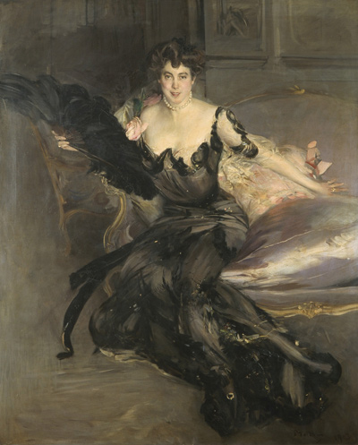 Photography, which was still relatively new, helped to capture Edwardian society and it also influenced it in turn. Dress designers and artists such as Sargent, William Orpen and Whistler played with the contrast between black and white. At one of his openings Whistler insisted that women wear only those two shades so that they would not clash with his yellow walls. In Boldini’s portrait of the French actress Ginette Lantelme, almost the only colour comes from her chestnut hair and a dash of her pink rose. There are long forgotten faces here — languid girls and women in a series of early colour photographs — but also familiar ones such as George Bernard Shaw, Herbert Asquith or Vita Sackville-West. Among the many treasures are Frederick Henry Evans’s wonderful photograph of the sea of steps leading to the chapter house at Wells cathedral.