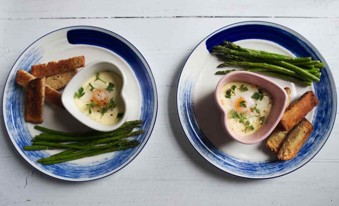 - Place the ramekins in a baking tray, and pour boiling water into the baking tray until it reaches half way up the ramekins. Place in the oven for 15 minutes, then carefully remove the ramekins from the hot water. Garnish with a small sprig of dill and serve straight away (the egg will continue to cook once it is removed from the oven, as its surroundings will still be hot).