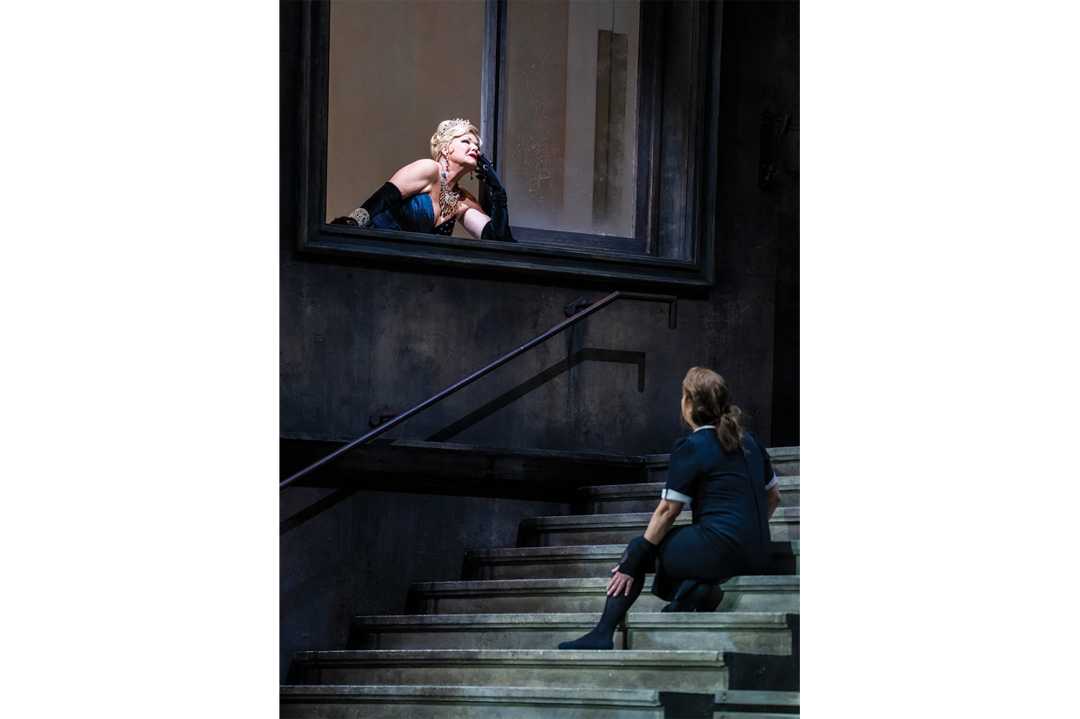 I’m struggling to attribute that cumulative impact to any one element of Christof Loy’s staging, because pretty much everything hits the spot. As Hofmannsthal’s libretto specifies, the set (by Johannes Leiacker) represents the prison-like back courtyard of a palace complex, here located in a generic mid-20th century. Doors swing open and lights flick on indoors, where the household can be glimpsed rushing about in panic as terrible events unfold, unseen. Loy’s storytelling is lucid, but shot through with visual poetry. The costumes spell out the social hierarchies (a maid’s outfit for the degraded Elektra; full ball gown and jewels for her murderous mother), and a servant brings a flaming torch to throw ritual light on the final bloodbath.