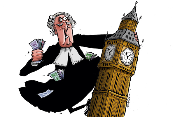 You might say that English law has had worldwide reach since the empire. But London’s new globalised law does not confine itself to litigants from the old imperial possessions. It welcomes anyone from anywhere who can pay. In all seriousness, politicians now talk of the law of the land as a foreign exchange earner. Kenneth Clarke, then justice secretary, told City lawyers at Clifford Chance last year, ‘The UK may no longer be able to boast that it is the workshop of the world. But the UK can be lawyer to the world.’ Boris Johnson told the Confederation of British Industry last month that 47 per cent of the world’s legal services exports come from the UK. We should rejoice, he cried, and celebrate the trickle-down effects. ‘Those rouble-fuelled refreshers and retainers find their way into the pockets of chefs and waiters and doormen and janitors and nannies and tutors and actors, and put bread on the tables of some of the poorest and hardest-working -families.’