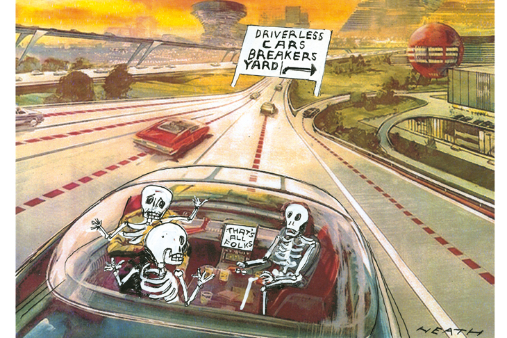 I was worried that going to the autonomous vehicle exhibition in Stuttgart would be tantamount to an atheist walking into St Peter’s while the Pope was conducting a mass. There is something religious about the fervour with which adherents to the driverless credo practise their faith and promise us a new kingdom. Their proselytising has indeed convinced many. Politicians are making outlandish statements, such as Jesse Norman’s two weeks ago, that ‘Our entire use of roads is to be revolutionised by autonomous vehicles’, and pouring large sums — a promised £180 million so far — into bizarre research projects such as the development of strange robot cars slower than a Reliant Robin and allowed only on pavements in Milton Keynes.
