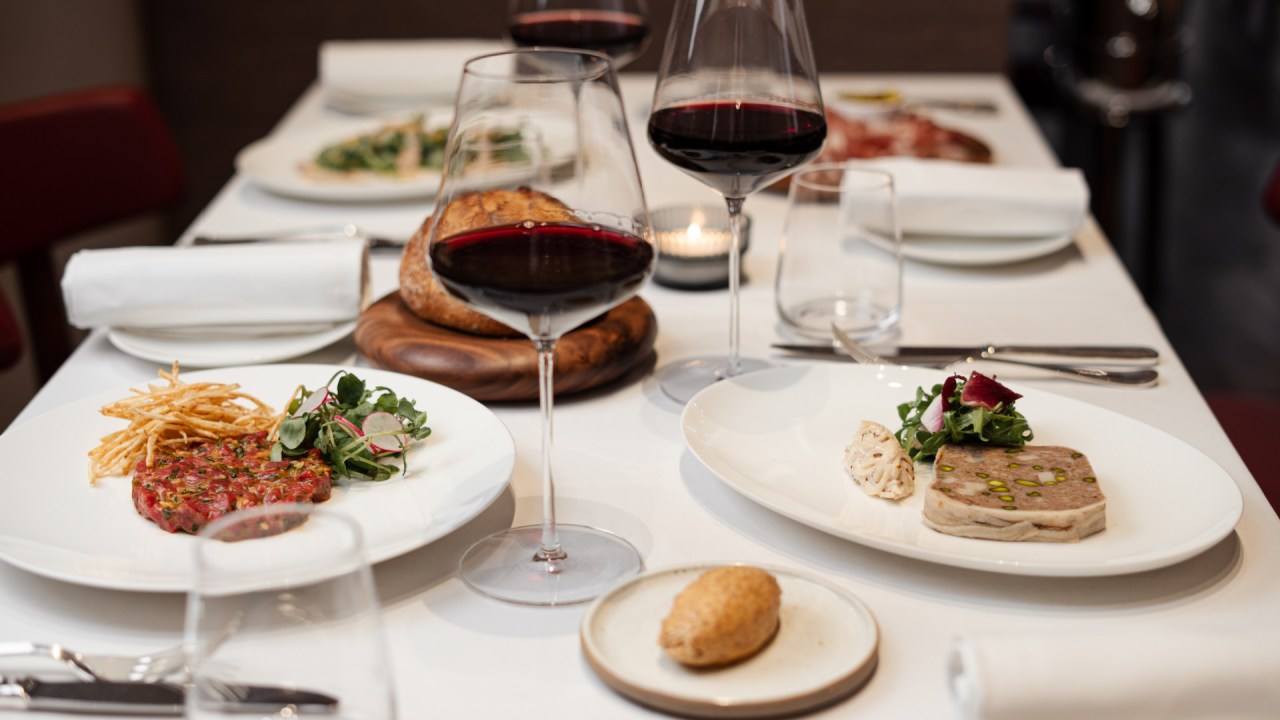 It is modern British, which means modern global now – some things cannot be erased, even by maniacs. Particularly by maniacs. There is smoked salmon, crab, and beef topside to start, or beef and oyster gratin or roasted beets with goat’s curd. There is pork shoulder steak, grilled salmon, a macaroni cheese salad and, for those wishing themselves in a greasy spoon, a piled ham, egg and chips offered within quotation marks, like a dish in pantomime. It is gaudy: when I saw it walking up to the next table, as if by itself, I wish I had eaten it. Instead, we eat pork steak and a strawberry parfait and crème brûlée. This is fine food in a fine restaurant, near more savage ghosts.