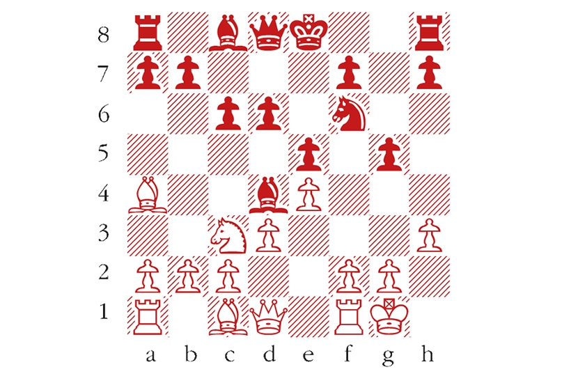 1 e4 e5 2 Nf3 Nc6 3 Bb5 Nf6 4 d3 Bc5 5 Nc3 Nd4 6 Ba4 c6 7 O-O d6 8 Nxd4 Bxd4 9 h3 g5 (see diagram) 10 Ne2 10 Bxg5 Rg8 11 Bxf6 Qxf6 yields a powerful attack. After 12 Kh2 (to dodge Bxh3) Qh6 threatens devastation with Rxg2+. Or, 10 Bxg5 Rg8 11 h4 is met by 11…h6 12 Bxh6 Nh7!, when 13 Qh5 (to defend h4) sees the queen trapped by 13…Bg4 10…Bb6 11 c3 Rg8 12 d4 Nxe4 13 Bc2 d5 14 Bxe4 dxe4 15 dxe5 Qxd1 16 Rxd1 g4 Even in the endgame, Black’s active bishop pair gives White plenty to worry about. 17 h4 g3 18 Nd4 Bd8! A deft change of direction, winning a pawn. 19 fxg3 Rxg3 20 Re1 Rg4 21 Bg5 Bxg5 22 hxg5 Ke7 23 Rad1 Bd7 24 e6 fxe6 25 g6 hxg6 26 Nb3 e5 27 Na5 Be6 28 Rd2 Rb8 29 b4 Kf6 30 a4 Rg3 31 Rxe4 Bd5 32 Rh4 Rxc3 33 Rh7 b6 34 Nxc6! Extreme tenacity from Caruana. Bxc6 35 Rc7 The pin on the c-file allows White to win back the bishop, but now Mamedyarov finds an accurate path to simplify the position. 35…Rc1+ 36 Kf2 Rf8 37 b5 Ke6+ 38 Kg3 Rc3+ 39 Kh2 Rh8+ 40 Kg1 Rh1+! 41 Kxh1 Bxg2+ 42 Rxg2 Rxc7 43 Rxg6+ Kd5 The extra pawn promises an easy win when White’s king is so far from the action. 44 a5 Kc5 45 axb6 axb6 46 Re6 Kxb5 47 Rxe5+ Rc5 48 Re1 Rg5 White resigns