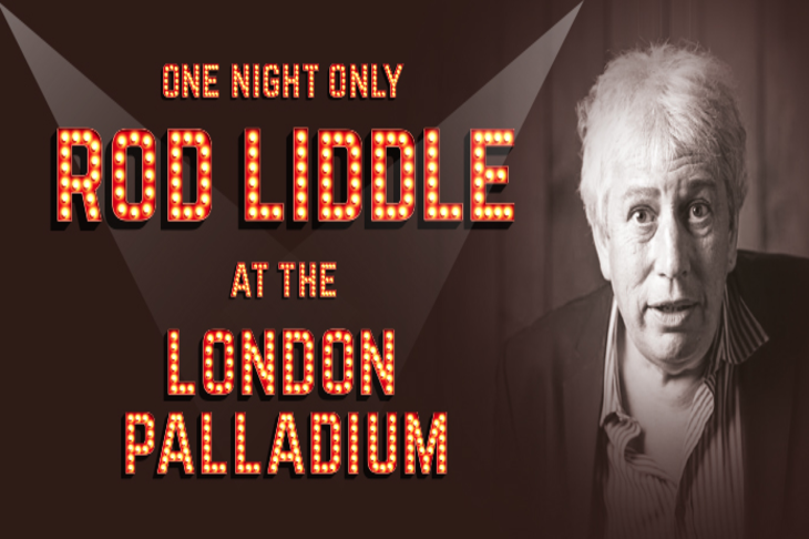 We do reader events every so often, the most popular of which have been with Rod Liddle. They have both sold out in a flash. The last one, a thousand-seater venue, was filled within four days – we barely had time to put an advert in the magazine. This time, we’ve booked Rod again – but this time in the 2,300-seater London Palladium on Tuesday 15 May at 7pm. It will be the biggest event ever held by The Spectator.