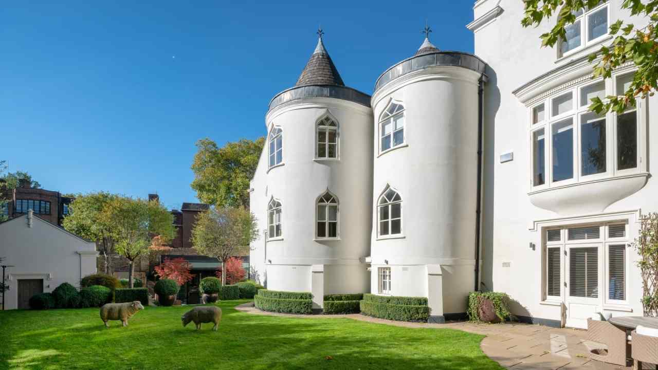 With its elaborate castellated pediment, arched and oriel bay widows, three round towers and snowy-white stucco façade, Hunter’s Lodge, in affluent Belsize Park, is anything but your average North West London home. Throw into the mix 500 years of history, the untimely demise of a British prime minister, scandalous royal shindigs and a recent, lavish three-year-restoration project providing a basement spa, glass-walled champagne cellar and cigar room, and this Georgian gothic revival castle makes for all-round drama.