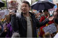 And at the centre of this bourgeois brouhaha was of course, the familiar face of Jamie Oliver, holding aloft an ‘Eton mess’ in true twee fashion. Oliver was incandescent at Johnson’s decision, as he told the crowd beneath his own Union Jack umbrella, leading them in a chant of ‘Eton!’ to which they replied ‘mess!’ Subtlety never was his strong suit…