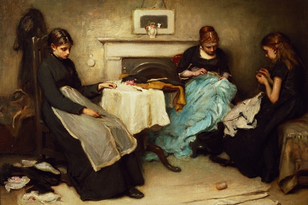 Look at ‘Faces in the Fire’ with its blatant symbolism of poverty: broken saucer, bare feet, empty birdcage. Other paintings resonate with such titles as ‘Hush!’ (the baby sleeps) and ‘Hushed’ (the baby is dead), or ‘Despair’ and ‘Hope’. To my mind, the narratives are of less interest than the still-life episodes within the compositions — beautifully painted flowers or crockery on a table, a workbox on the floor. One of the most affecting pictures is entitled ‘Gone’ (c.1877), which in its looser handling, vivid paintwork and pleasing spontaneity suggests the sketch rather than the finished composition. At the far end of the gallery is a group of portraits of the rich and famous, which became Holl’s staple output in the 1880s. The most interesting are of John Tenniel, Lewis Carroll’s illustrator, Gladstone and W.S. Gilbert of Gilbert & Sullivan fame.