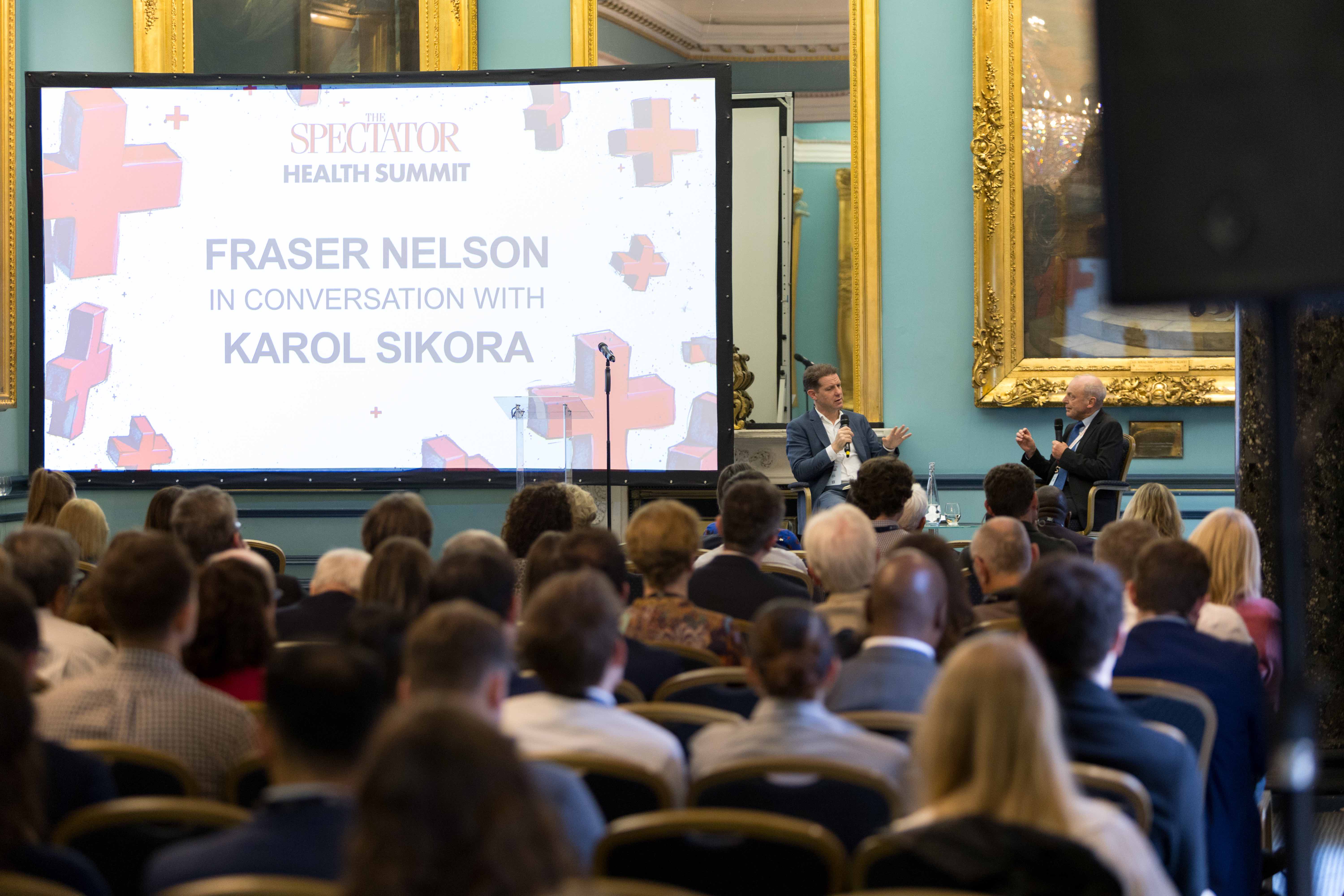 Professor Karol Sikora was supposed to be a guest on a Spectator panel last year when one sponsor said they would pull their funding unless he was dropped. Instead the sponsor was dropped, Sikora stayed and today he was back again, opening The Spectator’s Health Summit with our editor Fraser Nelson.