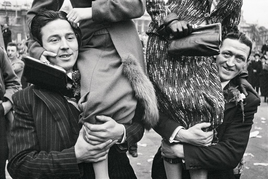 The result, newly republished as Henri Cartier-Bresson: The Other Coronation, records the energy and exuberance of the occasion. Two Brylcreemed lads in their best suits, hoisting their girlfriends on to their shoulders for a better view (see below). A puzzled old gent beneath a high-rise top hat, peering into the distance while his wife points something out. Policemen trying to keep a straight face. Four ladies, sitting down amid a litter of discarded newspapers, eating apples from their packed lunch. His Majesty’s subjects smoking, napping, sharing a joke. It captures the English as George Orwell would describe them four years later, with ‘their mild knobby faces, their bad teeth and gentle manners’.