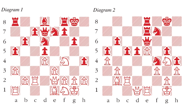 1 d4 Nf6 2 c4 e6 3 Nc3 Bb4 4 e3 b6 5 Nge2 Ba6 6 a3 Be7 7 Ng3 d5 8 cxd5 Bxf1 9 Nxf1 exd5 10 Ng3 Qd7 Black has emerged from the opening with a good game. He has solved all his development problems, and the exchange of light-squared bishops has left White with weaknesses on the light squares, as well as a rather poor bishop. 11 Qf3 Nc6 12 0-0 g6 13 Bd2 0-0 14 Nce2 h5 Seizing the initiative, and threatening to drive back the knight from g3, thus further undermining White’s hopes of achieving e4. 15 Rfc1 h4 16 Nf1 Ne4 17 Nf4 a5 18 Rc2 Bd8 19 Be1 Ne7 20 Qe2 Nd6 (see diagram 1) 21 f3 The advance e4 is White’s only real hope of serious counterplay, so he feels obliged to attempt it, but there is always the risk that, if he fails to get in e4 in favourable circumstances, f3 will just prove to be a weakening, as in fact happens. 21 … g5 22 Nd3 Qe6 23 a4 Ng6 24 h3 f5 25 Bc3 Bronstein writes that Botvinnik clearly feared … Rf7, … Bf6 and … f4, so he overprotects d4. However, the problem with this move is that he relieves Black of any worries over his c7-pawn, which permits the black queen’s rook to come to the e-file. Sveshnikov’s suggestion of 25 Rac1 would at least make that plan more difficult to carry out. 25 … Bf6 26 Re1 Rae8 27 Qd1 Rf7 28 b3 Rfe7 29 Bb2 Black’s build-up has been completed and his pressure down the e-file reaches its apotheosis. Time for the breakthrough. 29 … f4 30 Ne5 Bxe5 Not 30 … Nxe5? 31 dxe5 Bxe5 32 exf4 White is winning, because of the pin down the e-file: for example, 32 … Bd4+ 33 Qxd4 Qxe1 34 Qh8+ Kf7 35 Qf6+ Kg8 36 f5 and Black is busted. 31 dxe5 Nf7 32 exf4 Nxf4 33 Nh2 c5 34 Ng4 (see diagram 2) 34 … d4 A time-trouble mistake that could have cost him dearly. Instead, 34 … Qg6 keeps a large advantage, the difference from the next note being that now 35 Bc1 is met simply by 35 … Nxe5. 35 Nf6+?? A shocker of a blunder. Black is only slightly better after 35 Bc1. 35 … Qxf6 White resigns