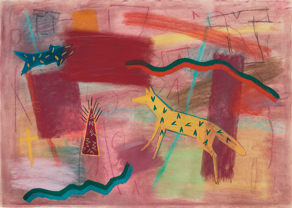 Works from the 19th and early 20th century are what often come to mind when Native American art is mentioned – but there is now a strong and growing market for high-quality pieces made by more contemporary craftspeople. It is to them that this sale is dedicated, with one of the most covetable lots being a neck ring made from gold set with colored stones and hung with a reversible turtle motif inlaid with coral, onyx, turquoise, lapis, and opal. The piece was created by Jesse Monongya, a Navajo who served in Vietnam with the US Marines before joining his jeweler father as an apprentice. The necklace is estimated to sell for $5,000-$8,000, while a silver cuff bracelet made by celebrated potter-jeweler Charles Loloma, a Hopi Native American, could realize $10,000-$15,000. Among the most valuable items, however, could be a naive pastel drawing entitled “Ghost Dance #7,” 1981, by Jaune Quick-to-See Smith, whose works are held in many major permanent collections, including those of MoMA, the Whitney, and the Smithsonian. “Ghost Dance #7” is estimated at $15,000-$25,000.