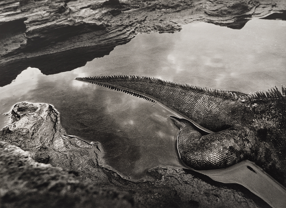 The death of Sebastião Salgado last year deprived the world of one of its most influential photographers. The Brazilian lensman was renowned for his brilliantly framed shots of manual laborers working under harsh conditions in under-developed countries. This sale includes a quintessential example in the form of “Gold Mine, Serra Pelada, Brazil (Figure Eight),” 1986, in which Salgado captures hundreds of people scaling ladders that lead in and out of the vast, opencast mine. A similarly intense composition shows a line of Ecuadorian women trekking to market with the mountains of Chimborazo Province in the background, while a remarkable image taken on Rabida Island in the Galápagos 22 years ago captures only the tail and one rear leg of an iguana lying in a mirror-still pool of water. Perhaps the most extraordinary photograph on offer, however, recalls Iraqi dictator Saddam Hussein’s troops torching the Kuwaiti oil fields before retreating. “Fallen Worker, Kuwait Oil Fields,” 1991, shows a man who has been knocked to the ground and coated head to foot by a vast jet of “black gold.”