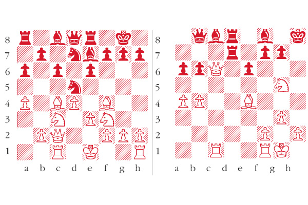 1 d4 d5 2 c4 e6 3 Nf3 Nf6 4 Nc3 Be7 5 Bg5 Nbd7 6 e3 0-0 7 Rc1 c6 8 Qc2 a6 9 a4 Re8 10 Bd3 dxc4 11 Bxc4 Nd5 12 Bf4 (see diagram 1) White agrees to give up his bishop at f4 for the knight. On a dogmatic evaluation all the advantages will be on Black’s side: the two bishops and a spoiled pawn formation for the opponent. But a concrete approach shows that White has a considerable lead in development and the opportunity for play in the centre, and these factors outweigh the others. 12 … Nxf4 13 exf4 c5 14 dxc5 Qc7 15 0-0 Qxf4 16 Ne4 This pawn sacrifice is the only way for White to maintain his initiative and exploit his lead in development. 16 … Nxc5 17 Nxc5 Bxc5 18 Bd3 b6 19 Bxh7+ Kh8 In Alekhine’s opinion, the decisive mistake, since ‘after 19 … Kf8! it would have been very difficult for White to show how he could win, despite his positional superiority.’ 20 Be4 Ra7 20 … Rb8 was better. 21 b4 Now White wins by force. 21 … Bf8 22 Qc6 Rd7 23 g3 Qb8 24 Ng5 With the threat of 25 Nxf7+! 24 … Red8 (see diagram 2) 25 Bg6 The swiftest way of switching the queen to the h-file. The insipid 25 Bg2 is parried by the same move 25 … Qe5. 25 … Qe5 Rubinstein decides to give up the exchange. If 25 … fxg6 (25 … Kg8 26 Qe4!; 25 … Bb7 26 Qc4!), then 26 Qe4! Bd6 27 Qh4+ Kg8 28 Qh7+ Kf8 29 Qh8+ Ke7 30 Qxg7+ Ke8 31 Qg8+ Bf8 32 Qxg6+ Ke7 33 Qxe6 mate. 26 Nxf7+ Rxf7 27 Bxf7 Qf5 28 Rfd1 Rxd1+ 29 Rxd1 Qxf7 30 Qxc8 Kh7 31 Qxa6 Qf3 32 Qd3+ Black resigns